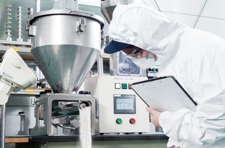 We offer a variety of options to save labor, improve safety, and reduce the workload of staff, including an “air suction loader” that automatically transfers powder materials to high places and a “lifting lifter” that allows easy adjustment of the feeder discharge height. We have also developed screw feeders with special specifications, such as heat-resistant, explosion-proof, and pressure-resistant, to create a product system that can be introduced to a wide range of sites.